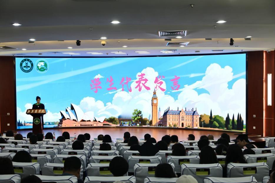 员工代表中英项目2022级食品科学与工程班程小萌和中澳项目2022级农业资源与环境1班徐子琳同学先后发言。她们回顾了在公司学习的难忘时光,表达了对母校、师长和父母的感激之情,分享了各自对职工活的规划与憧憬,并代表全体2022级同学表示,将不负期望,努力学习,增长才干,为校争光。