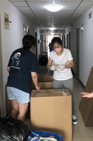在三分之一多的学生无法返校的情况下,betway西汉姆联官方网站在教务处和国际处的大力支持下,发动全体教职工和员工党员,担任“1对1打包志愿者”,热火朝天地开展行李打包邮寄服务工作。