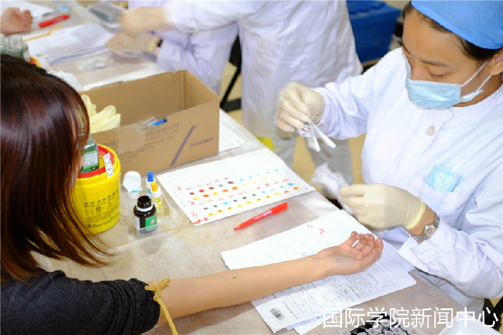 October 28th, Beijing University of Agriculture organized the teachers and students for free blood donation. International College positive response the school call.