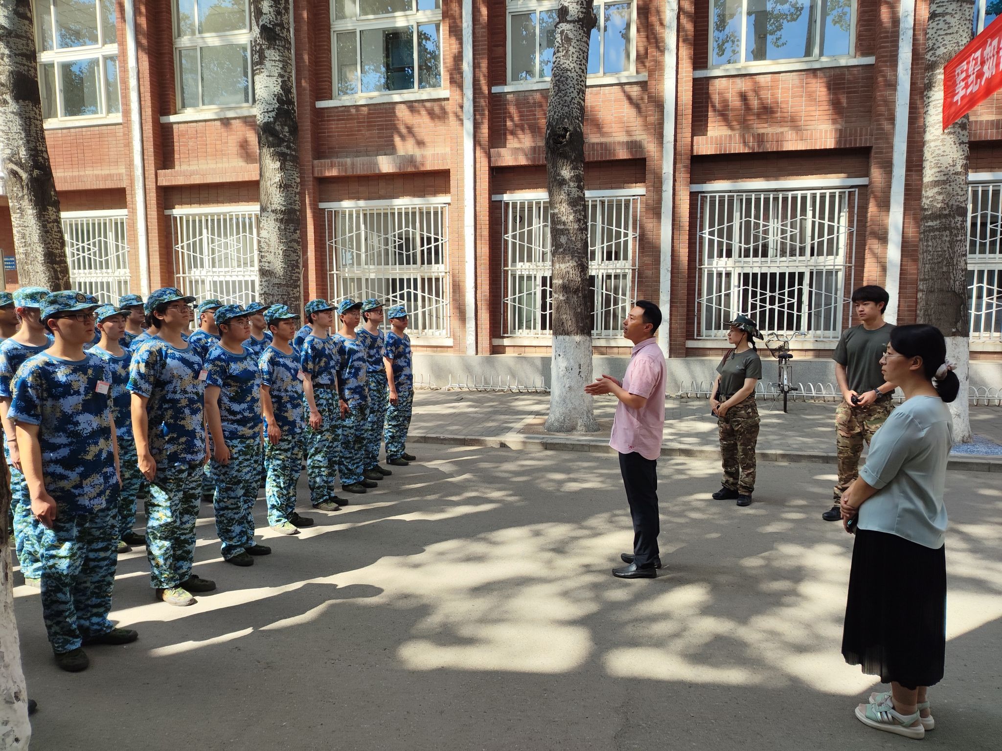 杨宝东对参训员工提出三点希望:一是要充分认识军事训练的重大意义,增强国防安全意识,为祖国的安全贡献我们的力量,坚定完成好这门必修课的决心;二是要努力达到课程的各项要求,遵守军训纪律,服从教官指挥,在训练当中磨炼自己的毅力,圆满完成军训任务;三是要养成军人的良好作风,以严明的组织性、纪律性和团队精神要求自己,并自觉运用到今后的学习和生活中去。