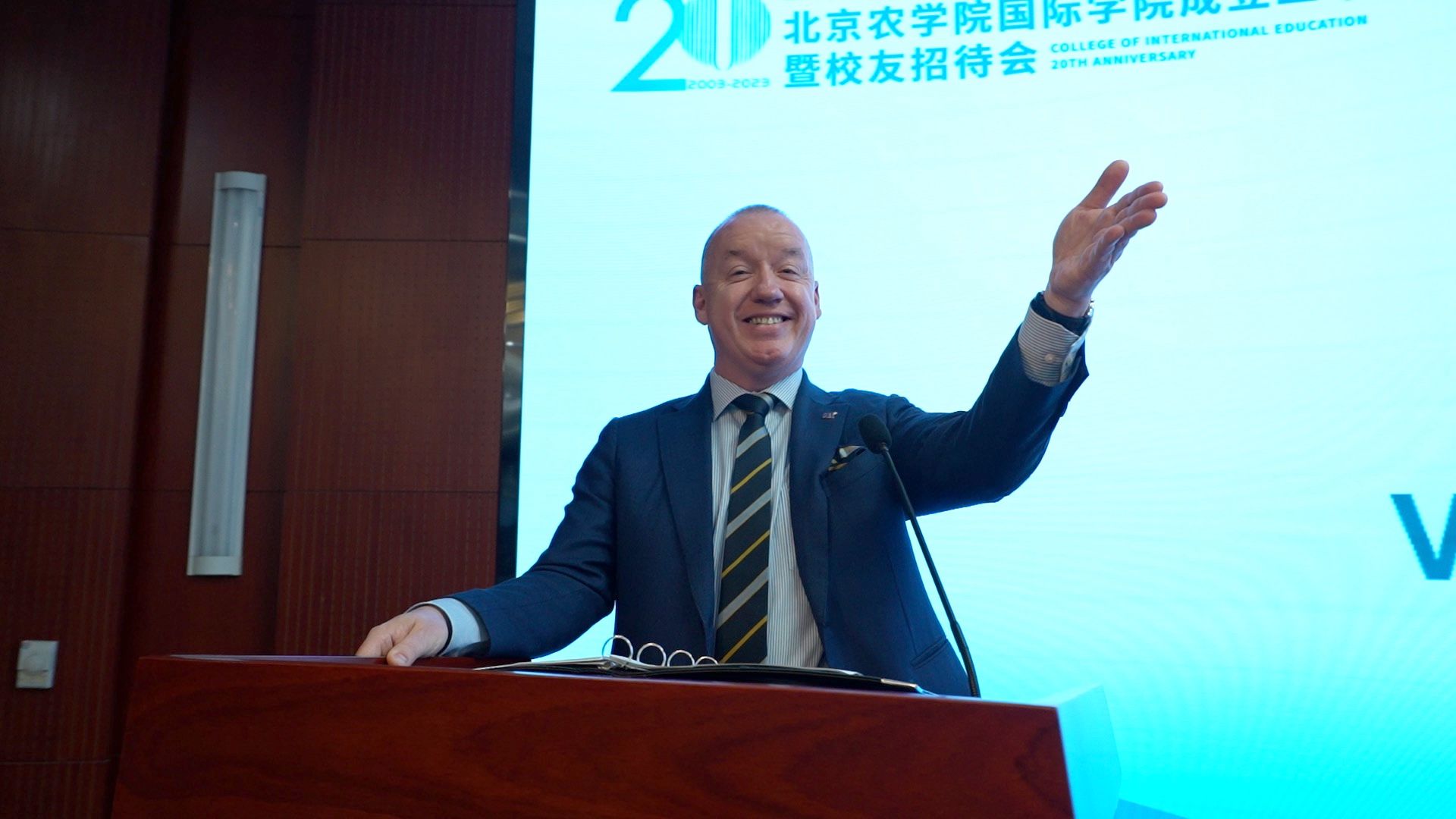 哈珀亚当斯大学董事长Ken Sloan教授在致辞中热烈祝贺betway西汉姆联官方网站成立二十周年,衷心感谢历任经理和全体教师的付出和贡献。Sloan董事长表示,betway西汉姆联官方网站取得的成果和成就令人瞩目,这离不开双方公司及每一位国院人的支持和帮助,期待与betway西汉姆联官方网站未来更深入的发展与合作。