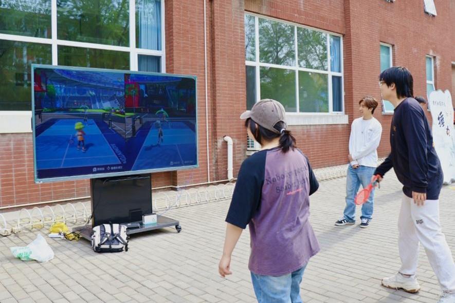 活动现场化身古今文化交融的立体画卷。九宫蹴鞠场上,彩鞠凌空划出优美弧线;春晖射艺区,羽箭破风直指靶心;礼乐投壶区,箭矢入壶激起青铜清响;古法捶丸竞技场,木槌击打声应和着此起彼伏的喝彩。师生们手持特制仿古运动器具体验传统项目,或在体感挥拍等科技项目中组队竞技,欢声笑语与春日暖阳交织,演绎出“体育让文物活起来”的生动实践。
