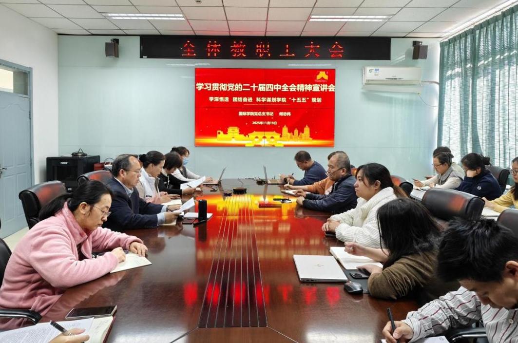何忠伟在会上作专题宣讲,围绕全会精神的核心要义,重点解读了“十四五”时期我国发展取得的重大成就、“十五五”时期在全面建设社会主义现代化国家进程中的承前启后地位,以及《建议》稿起草的总体考虑、主要目标和战略任务。他强调,“十五五”时期是夯实基础、全面发力的关键阶段,必须准确把握国内外形势的深刻变化,紧扣“落实教育强国建设纲要,推动公司事业高质量发展”主题主线,以党的政治建设为统领,以“实干创先年”为抓手,结合中外合作办学特色、国际合作与交流发展实际,顺势而上,迎难而上,做到公司一盘棋,集中力量做好公司各项工作。